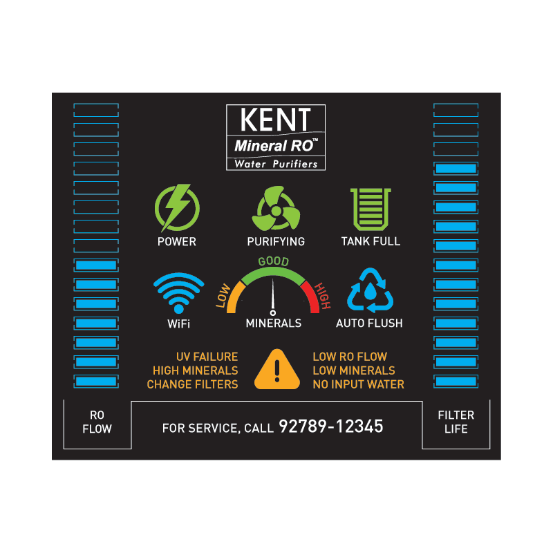 KENT Grand Star este un purificator cu 7 nivele de filtrare: filtru sediment, filtru carbon, ultrafiltrare, filtru osmoza inversa, lampa ultraviolete, filtru post carbon + filtru alcalinizare. Dezinfectie UV in rezervorul de apa.